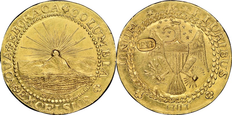 금화 가운데 '성배'라고도 불리는 이 금화는 조지 워싱턴 미국 초대 대통령 이웃에 살던 이프레임 브레이셔가 1787년 만든 것으로 당시 가치는 약 15달러 정도였다. 이 금화가 100억원 대에 이를만큼 높은 평가를 받는 이유는 당시 미국에는 화폐 기준이 없었고 통용되던 주화가 대부분 외국산이라는 점에서다. 곧 미국에서 자체 주조한 희귀한 주화라는 점에서 역사적, 학술적 가치가 높은 셈이다. 여기에 이 금화가 단 7개 현존한다는 사실과 이중 보존 상태가 가장 좋다는 점에서 높은 평가를 받았다.